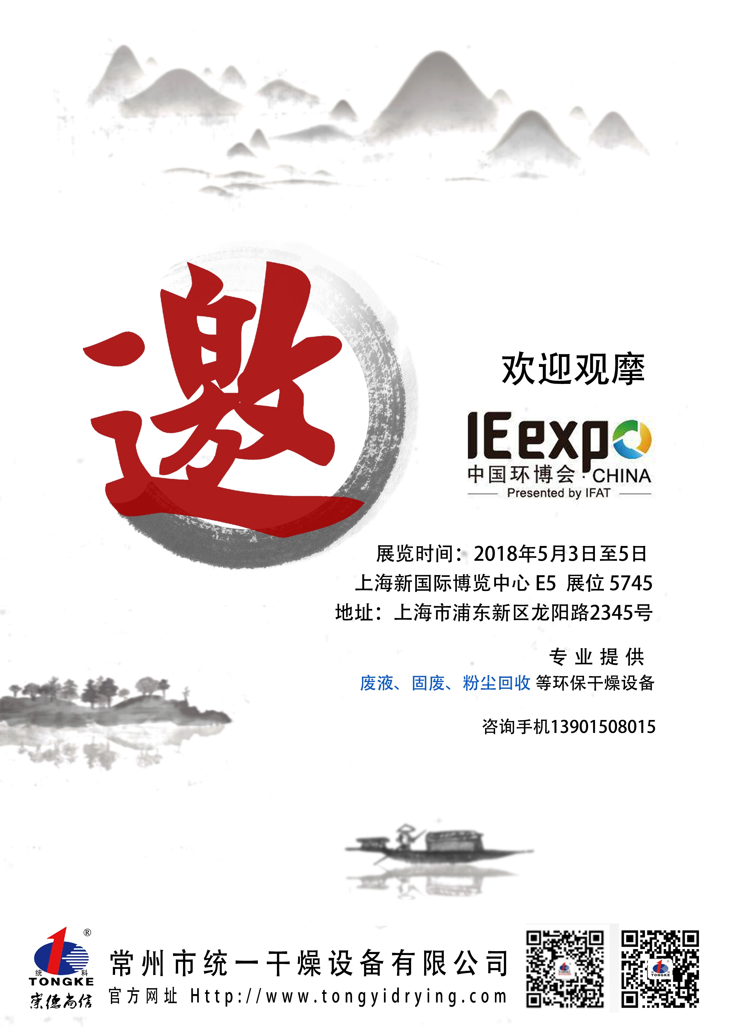 常州統(tǒng)一干燥與您相約中國環(huán)博會(huì) 展館E5 展位 5745